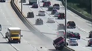 ที่ถนนในรัฐวิสคอนซินสหรัฐอเมริกา, คนขับสูญเสียการควบคุมรถของเขาซึ่งปีนพาร์ทิชันป้องกันและรื้อถอนเสาโคมไฟทั้งสอง. ไม่มีรายงานการบาดเจ็บจากอุบัติเหตุ.