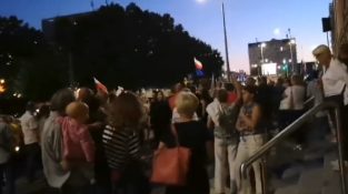 ระหว่างการสาธิตขององค์กรพัฒนาเอกชน COD ในโปแลนด์, คนที่จะสังเกตได้ว่าลำโพงและไมโครโฟนสิ่งอำนวยความสะดวกในการพูด, ที่จัดทำโดยเครื่องกำเนิดไฟฟ้าเพียงในด้านหน้าของ.