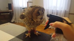 นกฮูกในรัสเซีย freshened ด้วยน้ำจากเครื่องพ่นสารเคมี.