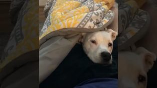 สุนัขนอนอยู่ใต้ผ้าห่ม, โบกหางของเขาทุกครั้งที่เขาเห็นเจ้าของเขา.