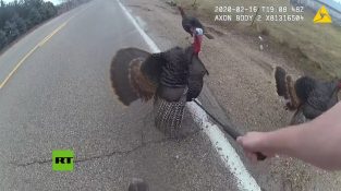 ใน Intacho สหรัฐอเมริกา, เจ้าหน้าที่ไบรซ์ Bienz ลาดตระเวนเมื่อเขาเห็นสามไก่งวงที่จะยืนอยู่ตรงกลางของถนน. เพื่อป้องกันไม่ให้เกิดอุบัติเหตุที่เป็นไปได้, พยายามที่จะลบออกจากถนน, แม้ว่า [...]
