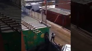 ในละแวก El Bosque ในซันติอาโก, ชิลี, ระหว่างการกักกัน, ผู้ประท้วงต้องการกระตุ้นตำรวจโดยแสดงก้นของเขา. การตอบสนองจากปืนใหญ่น้ำได้ทันที. ชาย [...]