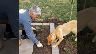 ชายคนหนึ่งพบวิธีที่ดีที่สุดในการใช้ประโยชน์จากทักษะการขุดของสุนัข, ทำให้เขาเป็นผู้ช่วยในสวน.