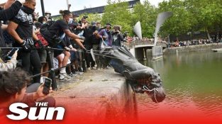 ผู้ประท้วงดึงรูปปั้นของเอ็ดเวิร์ดโคลสตันและโยนมันลงไปในแม่น้ำบริสทอล