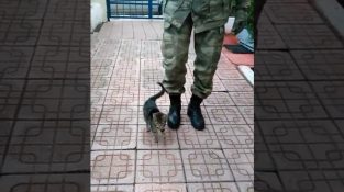 ทหารเข้าสู่ขั้นตอนของการเดินสวนสนาม, และแมวก็เลียนแบบเขา.