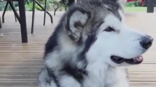 สุนัขตัวหนึ่งตกใจเมื่อจู่ๆ ตัวละคร Revenant จากวิดีโอเกม 'Apex Legends' ก็เริ่มวิ่งไปที่หน้าจอ.
