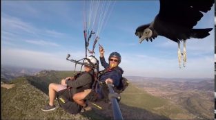 ระหว่างเที่ยวบินร่มร่อนเหนืออันดาลูเซียประเทศสเปน, นักโดดร่มทั้งสองถูกนกแร้งมาเยี่ยม. นกร่อนลงบนไม้เซลฟี่ของกล้องจากนั้นบินต่อไป [...]