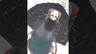 นักเล่นสกีกำลังเผชิญหน้ากับหมูป่า, ในอุทยานแห่งชาติอูมาวาในสาธารณรัฐเช็ก. ในยุโรป, Capercaillie อาศัยอยู่ในป่าสนของภูเขาที่มีต้นไม้ผลัดใบ, และพืชพันธุ์ที่อุดมสมบูรณ์ในผลเบอร์รี่.