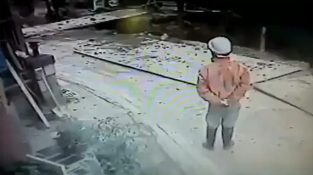 ในอาคาร, คนงานโชคดีมากเมื่อเครนพลิกคว่ำและตกลงมาข้างๆเขาพร้อมกับน้ำหนักบรรทุก.