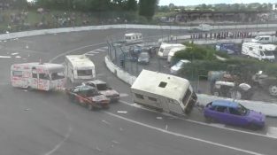 ข้อความที่ตัดตอนมาจากการแข่งขัน Caravanrace Speedway ที่ Warneton ประเทศเบลเยียม. นักแข่งคนสุดท้ายที่ยังมีคาราวานติดอยู่กับรถของเขาเป็นฝ่ายชนะการแข่งขัน.