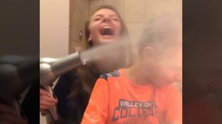 การเล่นตลกกับเครื่องเป่าผมและแป้งทาตัว
