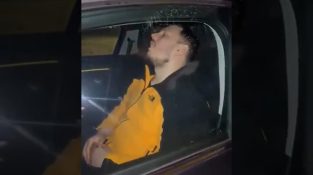 ผู้ชายที่นอนอยู่ในรถของเขา, เขาตื่นตระหนกเมื่อเพื่อนเขย่ารถด้วยมือของพวกเขา.