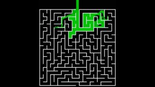 ของเหลวสีเขียวค่อย ๆ หาทางออกจากเขาวงกต. แอนิเมชั่น 3 มิติโดย Bergman Joe.