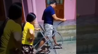 ชายชาวเวียดนามทดลองเครื่องออกกำลังกายชั่วคราวครั้งแรก. มีบางอย่างผิดพลาดในการออกแบบกลไก...