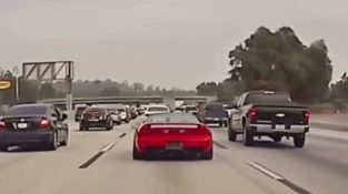 คำแนะนำ (ซ้าย) ขว้างแก้วกาแฟใส่รถสีแดงด้านขวา. กรรมจะลงโทษเขาโดยเร็ว.