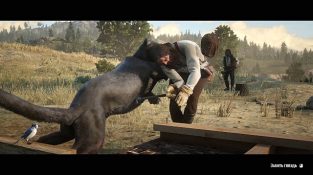 John ถูกสิงโตภูเขาโจมตีอย่างต่อเนื่องขณะสร้างบ้านไม้ในวิดีโอเกม Red Dead Redemption 2.