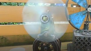 พัดลมนี้ทำโดยE. Paillard & Co. ในประเทศสวิสเซอร์แลนด์ในทศวรรษที่ 1910. มอเตอร์สปริงให้อากาศประมาณ 30 นาทีเมื่อเค้นเต็ม.