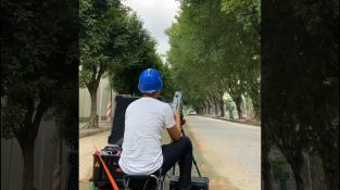 คนงานตัดกิ่งไม้จากระยะไกลด้วยปืนใหญ่เลเซอร์จากบริษัท SPT Laser . ของฮ่องกง.
