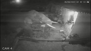 ตอนเย็นในหมู่บ้านทางตอนใต้ของอินเดีย, ช้างหิวทำลายหน้าบ้าน, มองหาอาหารในครัวด้วยความงวงของเขา.