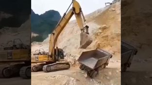 รถขุดช่วยรถบรรทุกก่อนที่จะพลิกคว่ำ