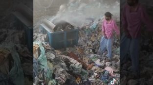 โรงงานรีไซเคิลเสื้อผ้าในอินเดีย. ทำงานโดยไม่มีมาตรการความปลอดภัยสำหรับคนงาน.