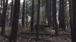 เมื่อชีวิตของลูกน้อยของเธอตกอยู่ในอันตราย, แม่กวางโจมตีหมีเพื่อช่วยมัน.