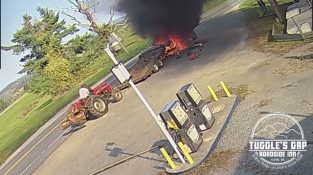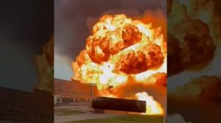 การระเบิดของปั๊มน้ำมันครั้งใหญ่ทำให้รถถังบินด้วยความเร็วสูง