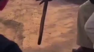 เจ้าหน้าที่พิทักษ์ป่าสอนนักท่องเที่ยวถึงวิธีการขับไล่แรดโดยใช้ไม้.