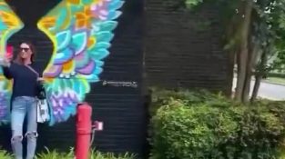เซลฟี่หน้าภาพวาดฝาผนัง