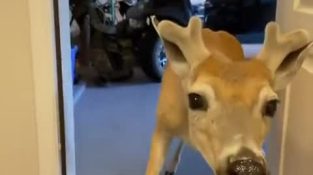 กวางเข้าไปใกล้โรงรถเพื่อกินของว่าง