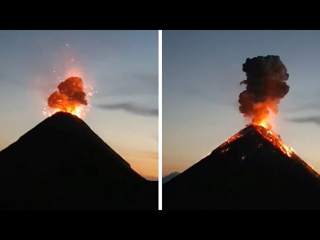 Volcan del Fuego Guatemala rekor etkileyici patlama içinde Yürüyüşçüler.