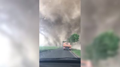 Bir Yunan köyü Lobberich Almanya alanı Çarşamba, Mayıs 16, 2018 vuran büyük bir kasırga tarafından karşıya. Bizim adam üç farklı dilde durumun resmini verir!