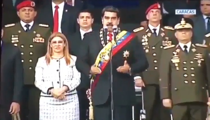 geçit üzerinde Karakas Venezuela Nicolás Maduro başkanının konuşmasında, Bir erkek arı ona yaklaştı ve uzak bazı metre patladı ama zarar vermedi. Yedi askerin suikast saldırıda yaralandı, Madouri Kolombiya Başkanı Santos itham ederken,, saldırının arkasında söyleyerek.