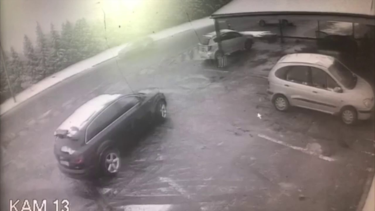 Bobruisk, Belarus şehrinde bir otoparkta, bir yaya, buzlu yolda kontrolünü kaybeden bir arabaya çarpmadan önce birkaç santimetre kaçar.