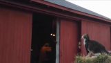 Kedi Mitzi, sentezleyicide korku filmi müziği çalıyor.