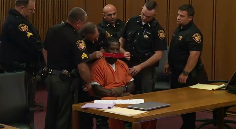 Ohio, Cuyahoga'daki Common Pleas adliyesinde alışılmadık bir manzara, Ağustos 2018'deki bir olayda. Franklin Williams, 32 yıl, üç ayrı silahlı soygunla suçlanıyor. Mahkumiyetinin duruşmasında, Williams konuşmayı bırakmayacak, Yargıç John Rousseau'nun yaklaşık 30 dakika boyunca tekrarlanan uyarılarına rağmen. Williams avukatlarını bile kovdu. Yargıç daha sonra bir grup polisi arayarak onu durdurmak için ağzına bant yapıştırdı.. Hakim daha sonra olay için özür diledi ve sanığı yeni bir duruşmaya çağırdı..