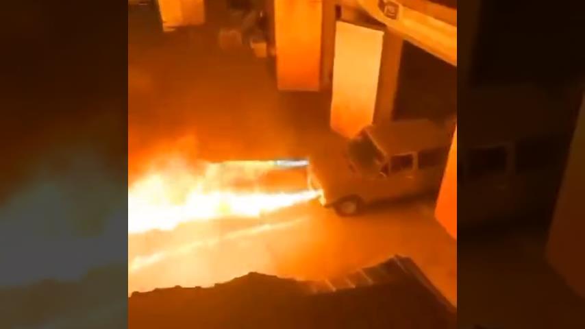 Rusya'da bir mühendis, bir LADA'nın farlarının arkasına alev makinesi yerleştirdi..