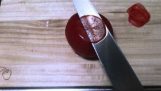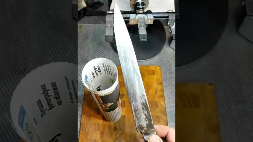 Kapsamlı bir bileme işleminden sonra, bir bıçak bir kağıdı etkileyici bir şekilde keser.