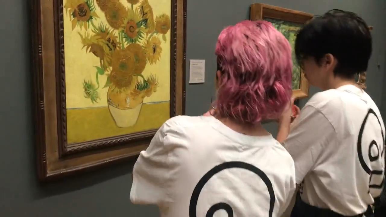 14 Ekim 2022 Cuma günü, 'Sadece Petrolü Durdurun' hareketinden iki aktivist, Londra, İngiltere'deki Ulusal Galeri'de sergilenen Van Gogh'un 'Ayçiçekleri' tablosundan bir tabloya domates çorbası attı. Herhangi bir yeni petrol veya gaz projesinin derhal durdurulmasını talep etmek için alınan bir eylem. Camla korunuyor, 84 milyon dolar değerinde tablo, hasar görmedi. Eylemciler polis tarafından gözaltına alındı.