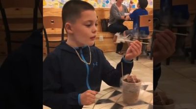 Ejderhanın nefesi (Ejderhanın nefesi) sıvı nitrojene batırılmış tahıl gevreklerinden yapılan donmuş bir tatlıdır.. Yiyen kişinin ağzına yerleştirildiğinde, burun ve ağızdan çıkan buharlar üretir.