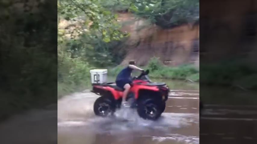 ATV'deki bir adam hızlanırken bazı hızlı dönüşler yapacak. Ama sürekli artan hız onu bir yolculuğa çıkaracak, onu oturduğu yerden fırlatıyor.