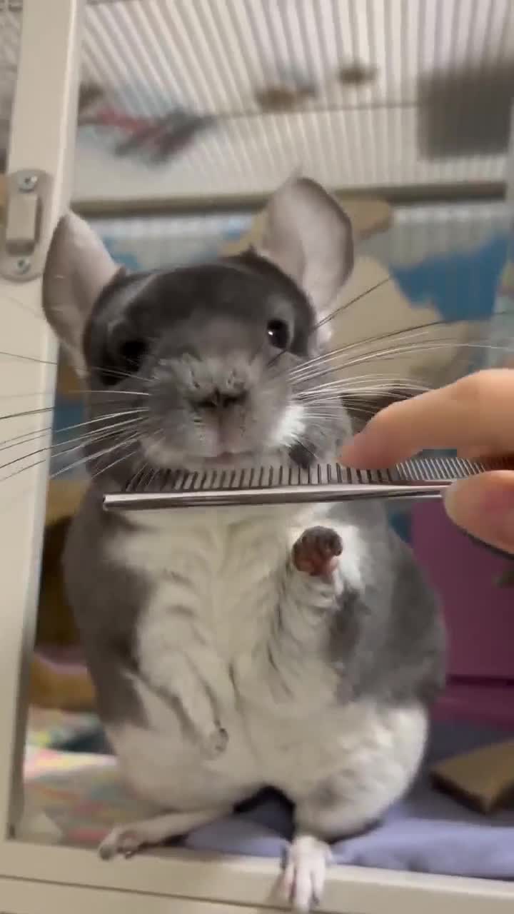 Chinchilla bir tarakla çizilmekten hoşlanıyor