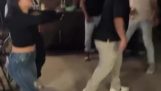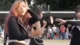 bir elektrik kablosu ile asılı, Bir kertenkele son derece dansçı Direk dansı görünüyor.