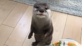 Su samuru kendi yetenek anahtarlarını oynarken müzik sergi, Washington'daki Smithsonian zooloji Parkı.