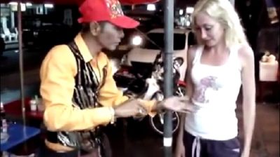 Şehirdeki sokak Pattaya Tayland, bir hokkabaz bize bir demo-in biraz olanakdışı sinüsler sigara ile yapar.
