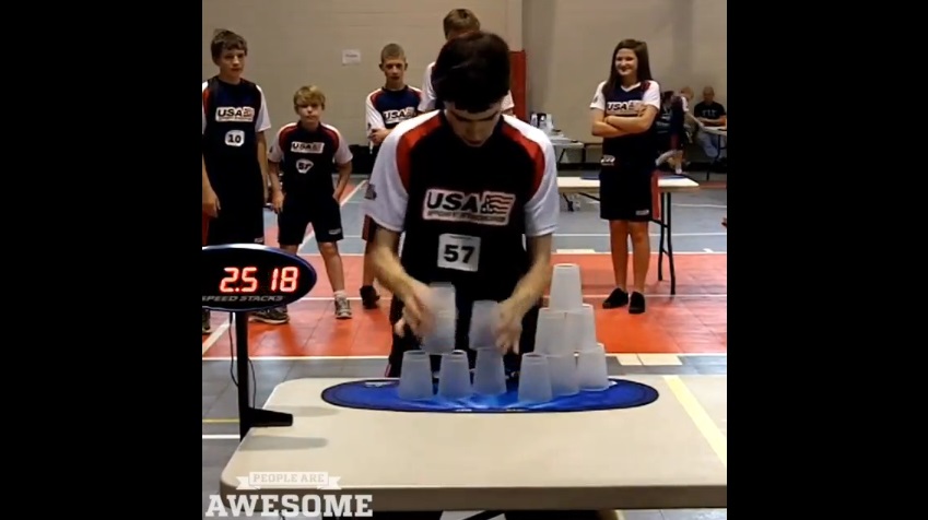 Genç William orel dünya rekorunu tatili yığma gözlük, evrensel olarak son yıllarda popüler oldu bir speed oyunu. Tüm kombinasyonları sadece 5 saniyede tamamlamayı başarır.