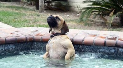 Cuzzie köpek sıcak su sırtında yüzme havuzundan atılır hissi seviyor. Otelde jakuzi açıktır, Sadece bu pozisyon ve zevk homurdanıyor alır.