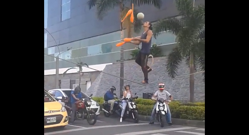 Medellin, Kolombiya şehirde, bir sokak hokkabaz tüm kim Trafik ışıklarında keser misin etkileyici bir manzara sunuyor. Bir kaç saniye içinde, genç adam bir ip onun gösterisi yapmak için ayarlar. İp ve bir bacak Dengeleme, hokkabaz dört Bovling ile olası bir şekil yapar, bir top ve bir çember.