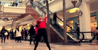 Aktris Angela Trimbur tasasız bir büyük alışveriş merkezinde dans ediyor, 'Fantezi ayak' Chromeo şarkı ritimleri.