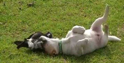 Sqwark, Avustralya saksağanı, sevimli arkadaşı viski ile oynama.